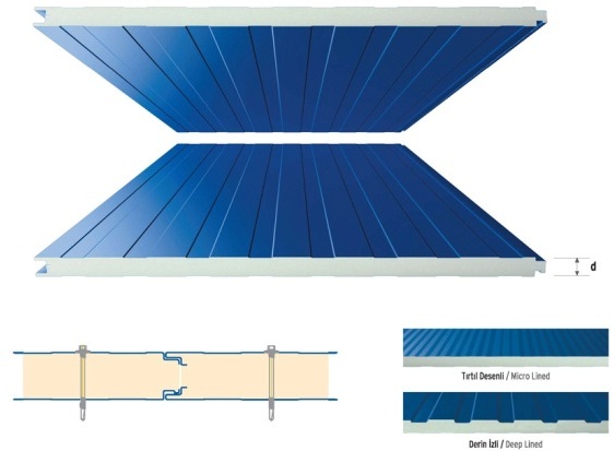 ساندویچ پانل سقفی متشکل از دو لایه ورق است که ما بین آنها فوم عایق وجود دارد.